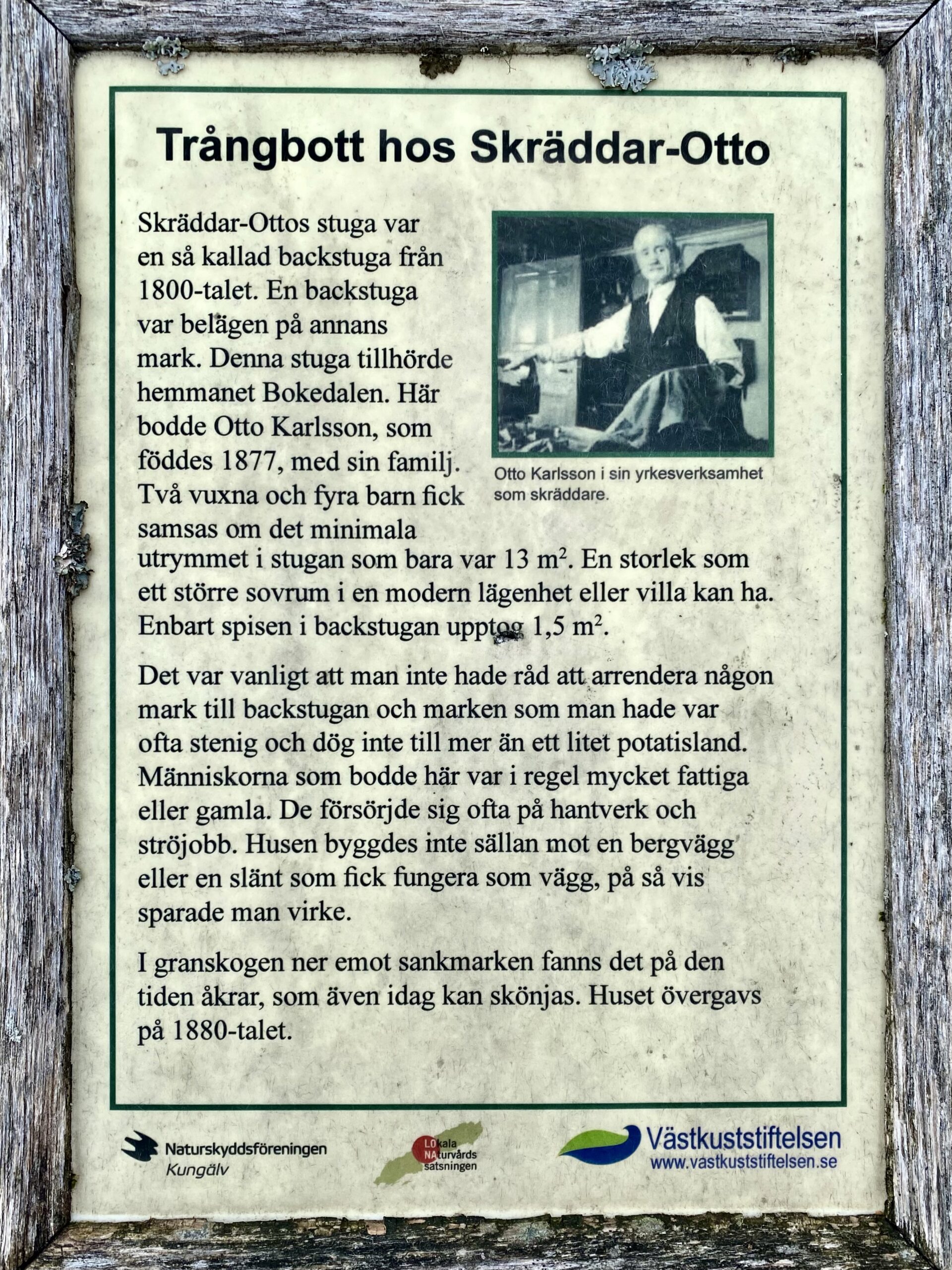 Etapp 8 börjar i Kungälvs kommun, men ungefär halvvägs hamnar du i Stenungsunds kommun. Etappen bjuder på lummig barrskog, små höjder, vackra skogstjärnar och några fina mossar. Längs vägen ligger flera väl uppstyltade torpruiner och en riktigt fin utsiktspunkt. Tyvärr går leden numera förbi flera kalhyggen och nyanlagda avverkningsvägar.