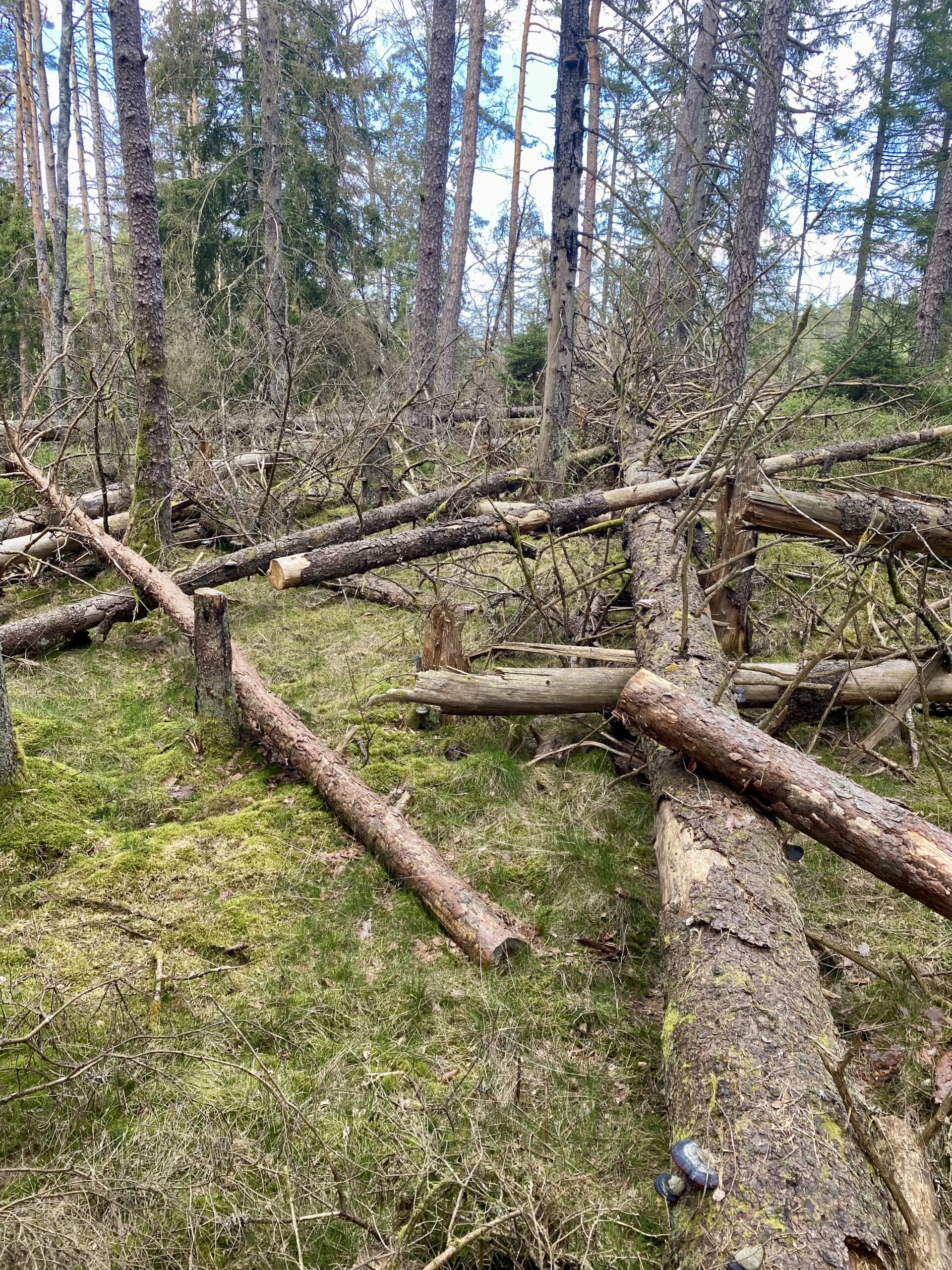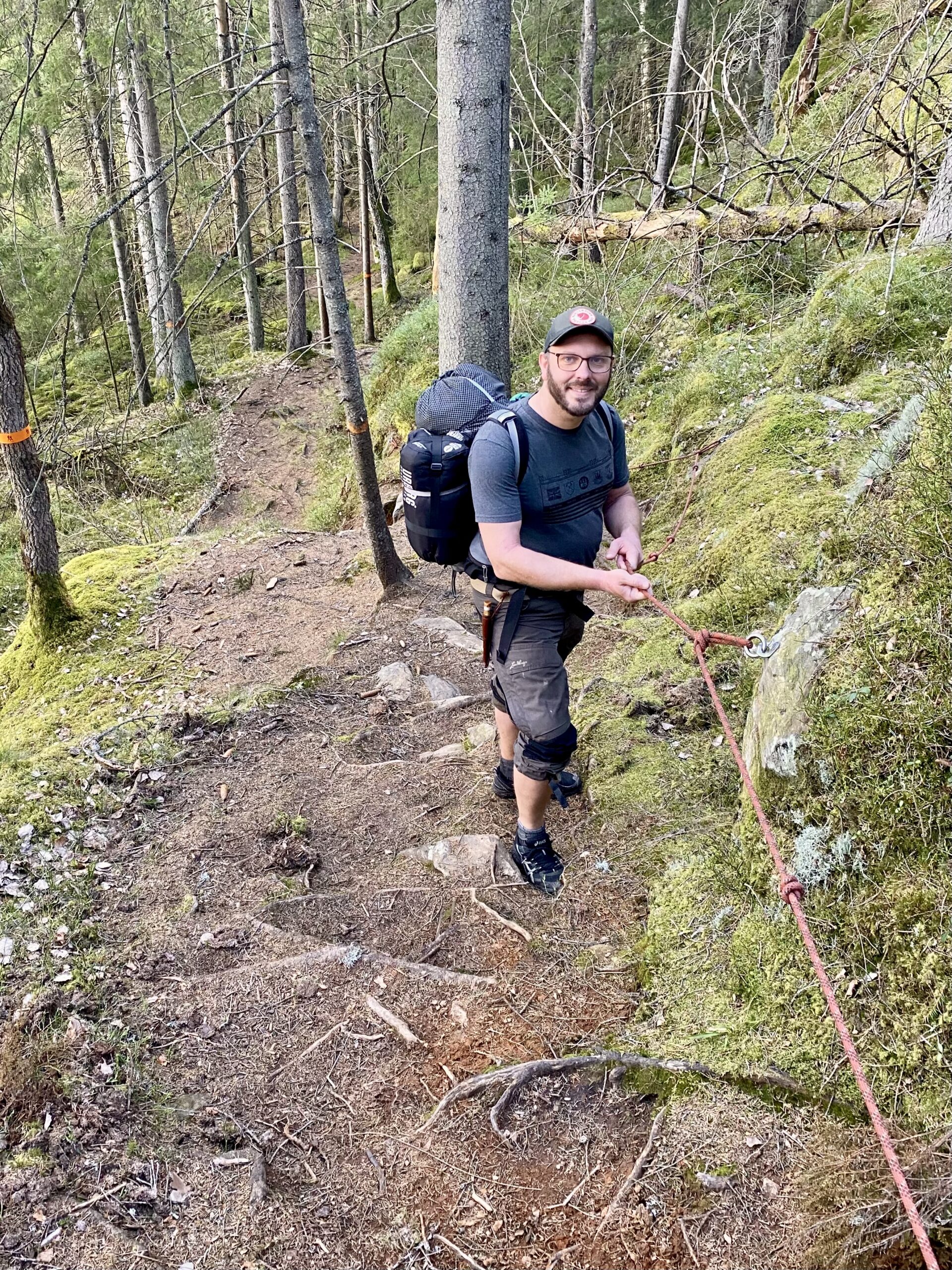 - Särskilt sträckan längs Måkevatten är drabbad av ett otal vindfällen tvärs över stigen. Det är inte lättgånget från början och detta gör det knappast lättare.