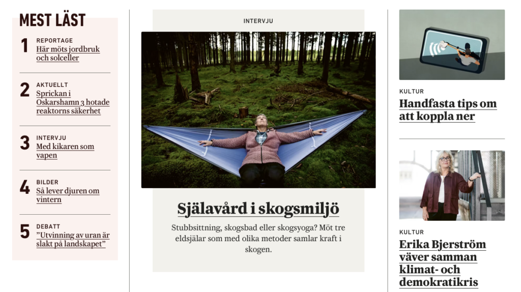 Skärmdump från Sveriges Natur december 2025 (ej klickbar).