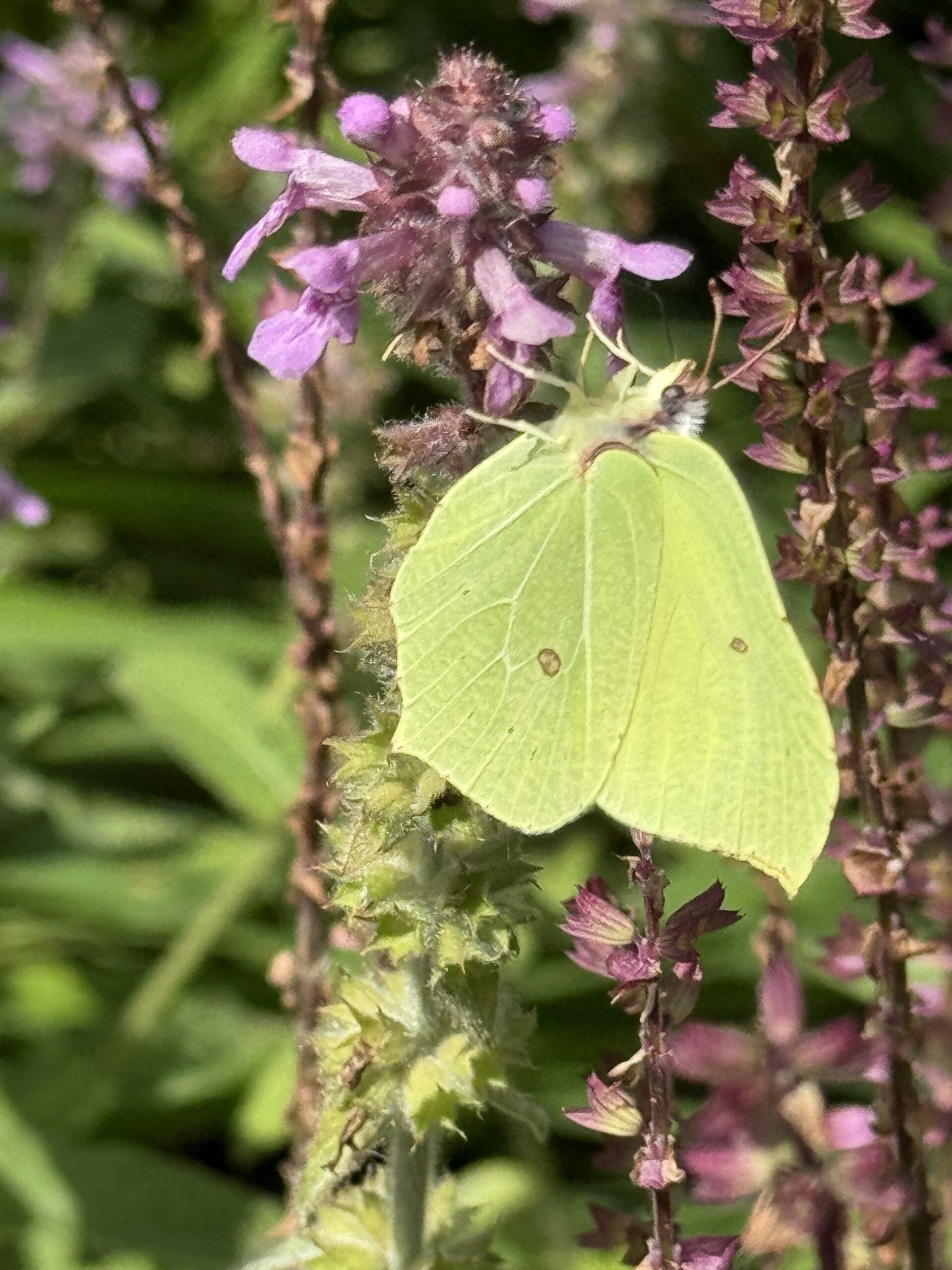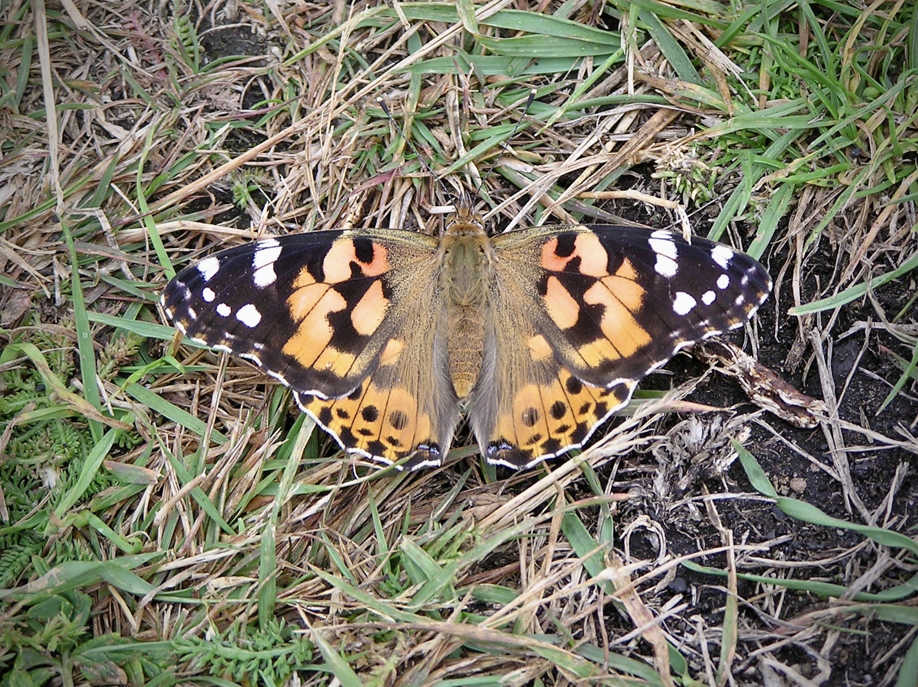 Ännu en flyttare som dyker upp i massförekomster vissa år. Mörkorange med ljusa fläckar. - Citronfjäril