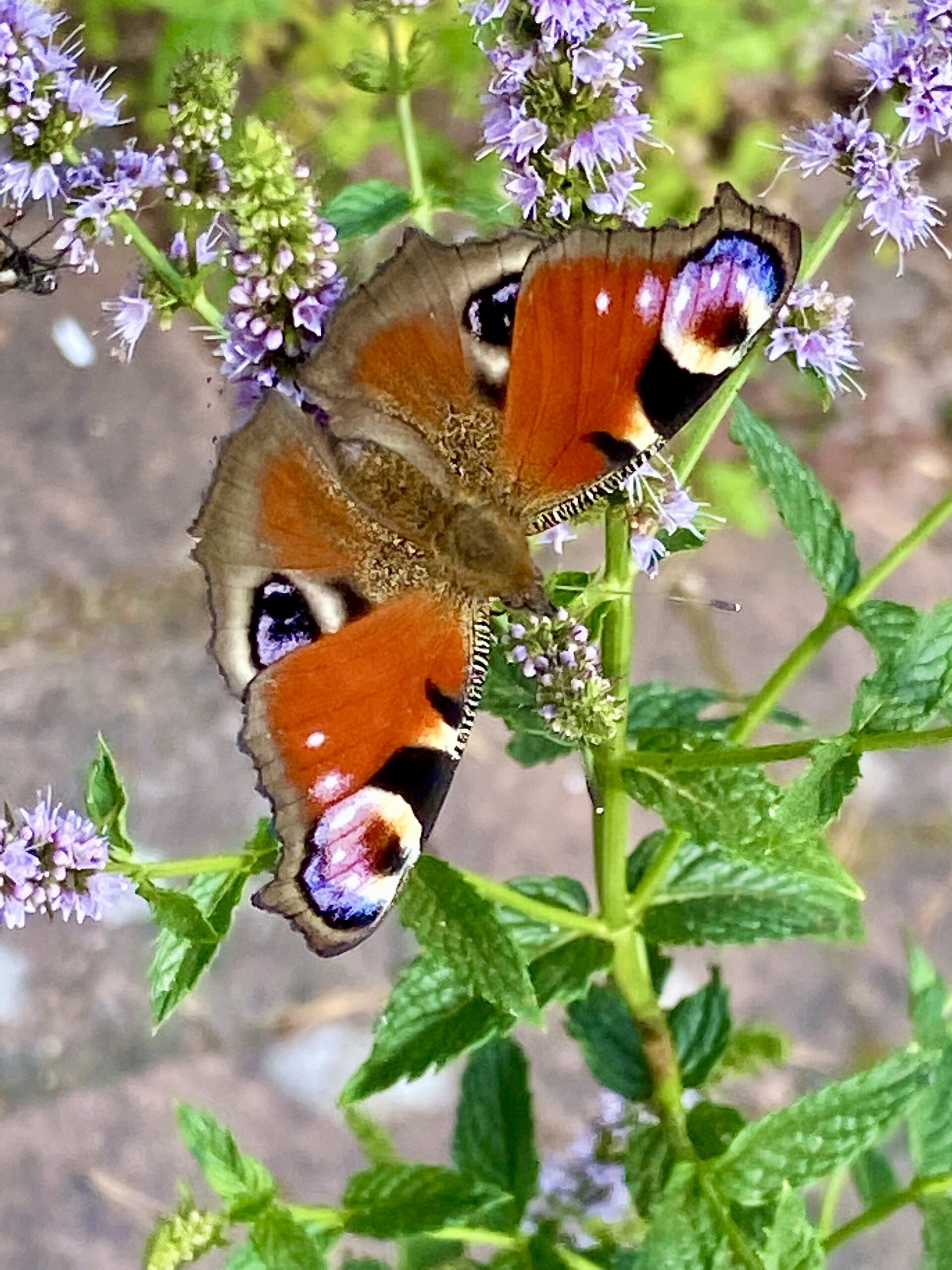 Lätt att känna igen på sina stora ”ögonfläckar”. Vanlig i trädgårdar, skogsbryn och vid varma husväggar. - Amiral