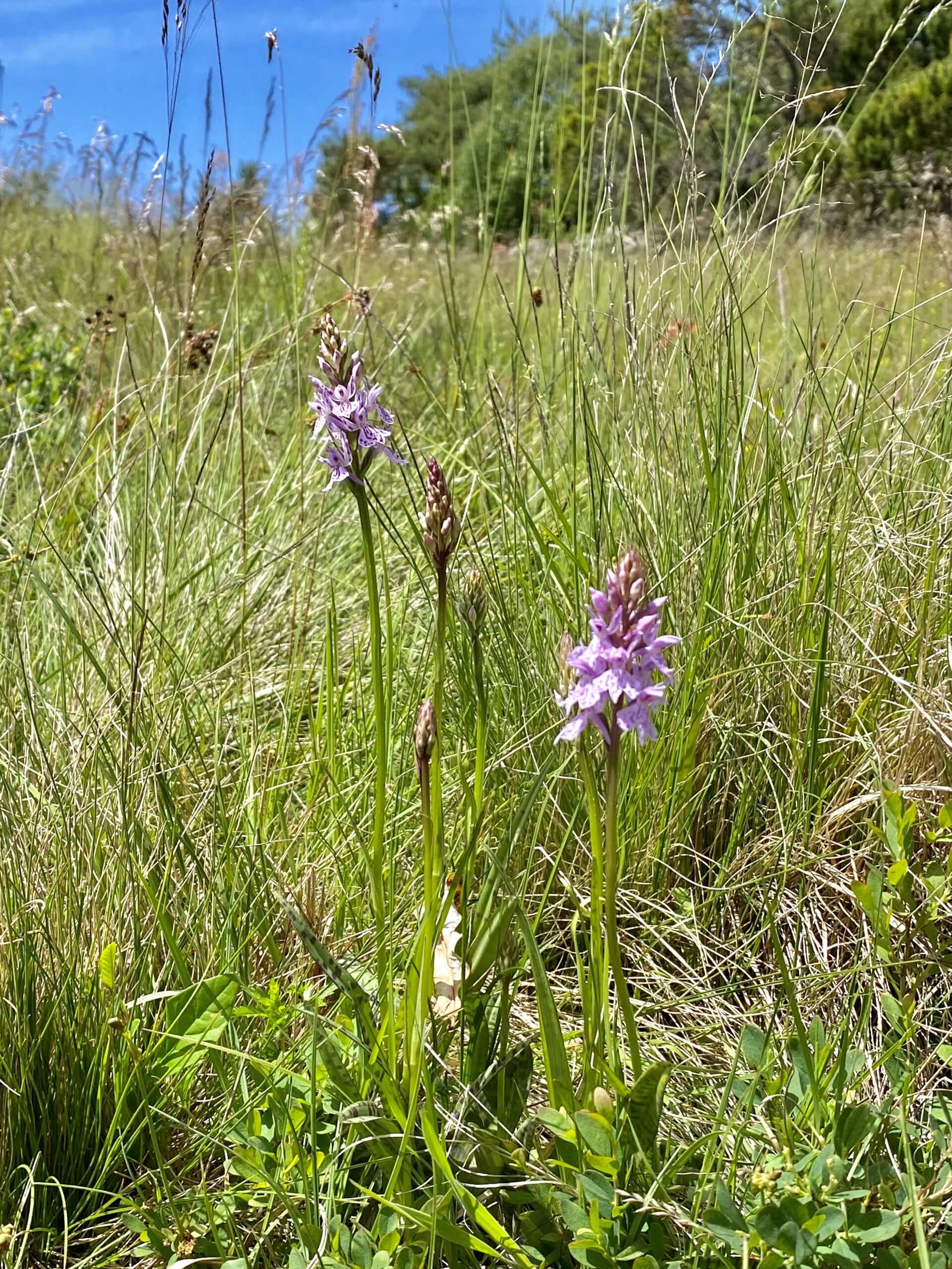 På vägen mot tallskogen passerar man ett högbeläget fuktigt parti – i praktiken en liten mosse mitt i hällmarken. Här blommar jungfru Marie nycklar rikligt. Fram till maj kan flera ejderhonor ligga på bo här.